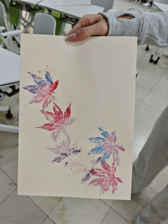 学生们拾叶寻秋韵,收集鲜活素材,以拼贴、拓印解锁创意,让落叶焕发新生。手作间藏秋意,劳动中显巧思。