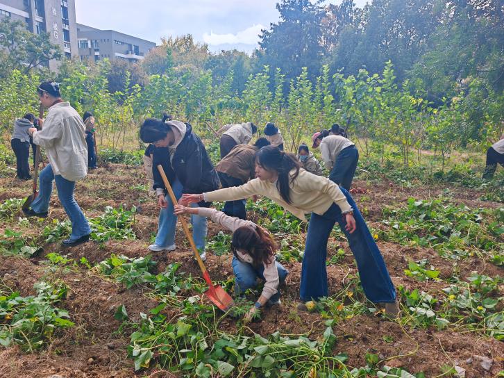 文萃苑·跃动社区组织学生采收红薯,在田野中感受土地的力量。在校庆前夕,将采收的红薯免费分发给师生,深刻践行劳动教育,深切厚植爱校情怀。
